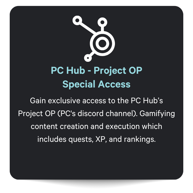 The PC Hub combines execution, community, and gamification to help you build consistency, generate results, and grow effectively. Level up with quests, earn rewards, and unlock new opportunities as you engage, execute, and evolve. Ready to start your quest? Let’s grow together!
