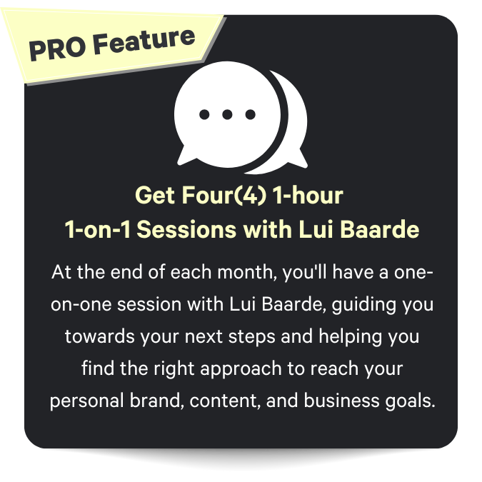 ✓ Four(4) 1-hour monthly 1-on-1 consultation with Lui Baarde
