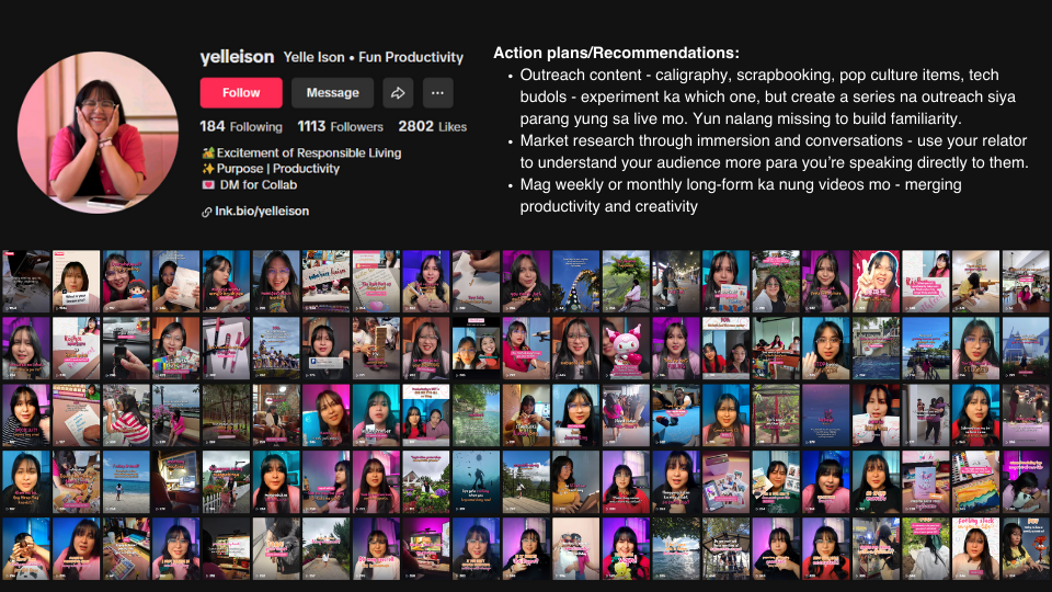 “Marami pala akong kayang gawin, mga talents na hindi lang nalalabas. I became more self-aware. 3,000 followers in just 100 days of posting on TikTok, this program brought leveled up my personal brand and opened doors to aligned opportunities.”
