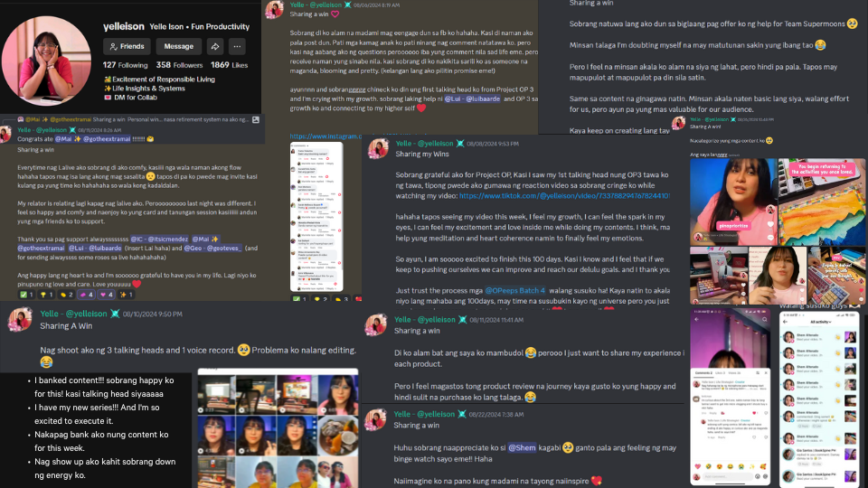 I never expected to be able to finish the 100 days of daily posting if not for the guidance from my fellow Opeeps, Coach Lui, and the accountability I had with my team. I never imagined this, and it truly helped me create content that is not only rooted in my purpose but also meaningful to me. Beyond the learning, what stands out to me is the incredible culture, the genuine care, and the sense of community among like-minded individuals who continue to grow and uplift one another.